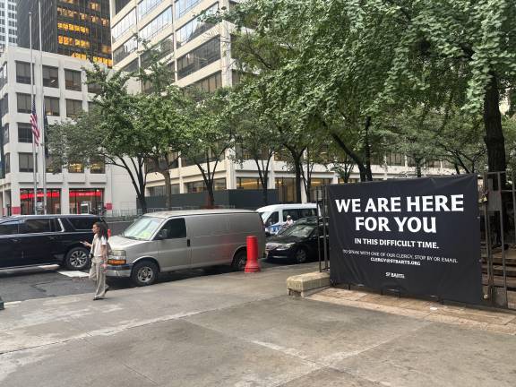 There were many other somber occasions across the city. One person drove all the way from Detroit to hold a lifesized wooden cross and join mourners in prayer at the makeshift memorial at the corner of Park Avenue and East 51st Street. The street is also known as Jack Rudin Way, named for the philanthropist and real estate developer. The firm is headquartered at 345 Park Ave.
