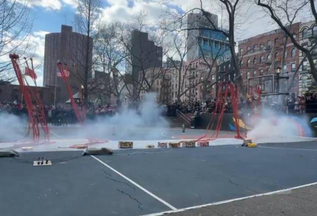 Thousands of Lunar New Year celebrants, noise enthusiasts and Chinatown curiosity seekers in general convened upon a stretch of Sara D. Roosevelt Park on Wednesday, Jan. 29, for the popular firecracker ceremony marking the calendrical start of the Year of the Snake. Following the city’s recent deep freeze, the weather was delightfully sunny, with temperatures in the mid-40s and rising.