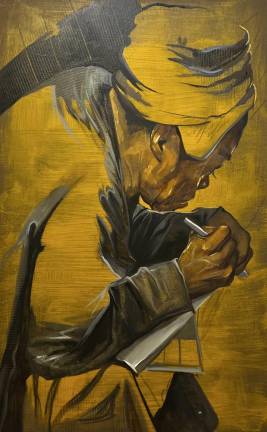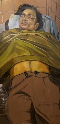 Beyond her sign, she had a name, Rachel, and a beautiful personality, and we became friends over the course of a few months. Rachel taught me that the act of simply slowing down and asking if a person needs anything can save somebody’s life. An example would be getting a blanket or umbrella, instead of just leaving a couple of dollars without pausing to ask what could really help someone out. When I asked Rachel to pose for a painting, her face lit up, and she shared that she dreamt to be an artist–I made sure to get her some art supplies so she could draw the street from her vantage point. Every day, she asked me how my painting was going, and let me know that she wanted to be surprised. By miraculous coincidence, on the evening of my exhibition opening last April, Rachel was finally able to obtain housing in New Jersey. She did not get to see her portrait, but every time I pass her now-empty “corner,” my heart glows with joy.